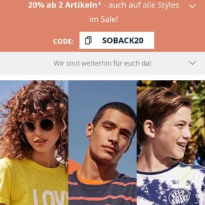 Aktuell gibt es auf soliver.de ab einem Kauf von 2 Artikeln im Sale 20% Rabatt. Dazu einfach den Code SOBACK20 im Warenkorb eingeben.