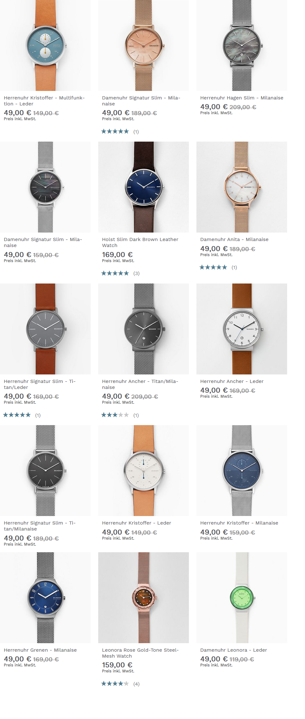 Bei Skagen Tolle Angebote einige Modelle Hybrid Smartwatch Holst – Titan für 69,00 statt (UVP 219,00 Euro) PVG für dieses Model ab 144,00 Euro laut idealo