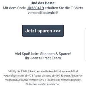 Hzuko 25.04.2019, 23:59 #Mit dem Code JD230419 erhalten Sie die T-Shirts versandkostenfrei!