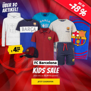 Da gibt es nämlich jetzt einen FC Barcelona Kids Sale mit bis zu 78% Rabatt.