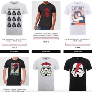 Bei den T-Shirts stehen 15 verschiedene Motive zur Auswahl: https://www.sowaswillichauch.de/offers/clothing/t-shirts/star-wars/totw.list