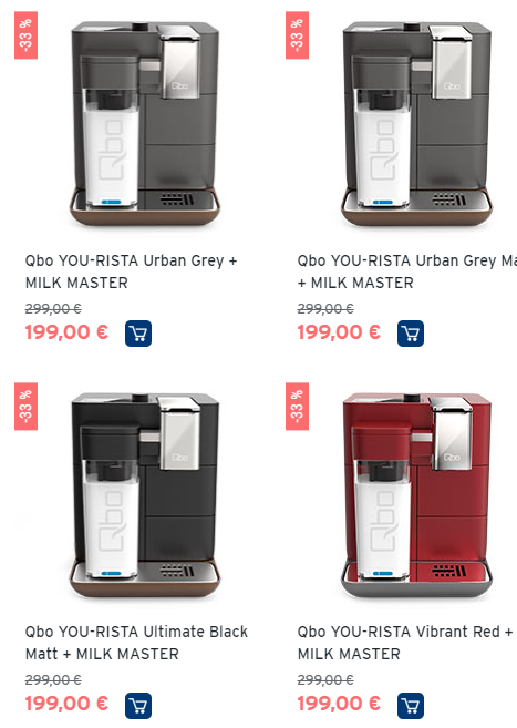 lemalix 27.04.2019, 11:57 # hilfreichAktion ist gerade aktuell wieder da, Ihr bekommt zum Beispiel die Kapselmaschin Tchibo Qbo You-Rista in verschiedenen Farben für 199€ (PVG laut Idealo ~249€)