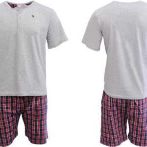 US Polo Assn Kurzarm-Pyjama für Herren in Grau/Rot