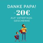 Der Gutschein ist nur auf Artikel der Produktseite „Vatertagsgeschenke“ anwendbar. Nicht auszahlbar und nicht mit anderen Aktionen oder Rabatten kombinierbar. Gültig bis einschließlich 21.05.2020
