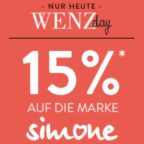 Bei Wenz bekommt ihr nur heute am WENZday 15% Rabatt auf die Marke simone. Ein Gutscheincode ist nicht notwendig, da die Preise bereits reduziert wurden.