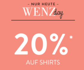 Matthi 24.04.2019, 20:48 #Nur heute bei Wenz: 20% auf ausgewählte Shirts.