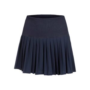 Der Wilson Midtown Rock ist die perfekte Kombination aus sportlicher Funktionalität und femininem Stil – gemacht für alle, die sich auf dem Tennisplatz genauso wohlfühlen möchten wie daneben. Mit seinem cleanen Look und der dynamischen Passform begleitet er dich mühelos durch Training, Match und Alltag.Das leichte, elastische Funktionsmaterial sorgt für optimale Bewegungsfreiheit und passt sich jeder deiner Bewegungen an – egal ob schnelle Sprints oder präzise Richtungswechsel. Gleichzeitig ist der Stoff atmungsaktiv und strapazierfähig, sodass du auch bei intensiven Matches angenehm trocken und komfortabel bleibst. Ein besonderes Highlight sind die integrierten Shorts, die dir zusätzliche Sicherheit und Komfort bieten. So kannst du dich voll auf dein Spiel konzentrieren, ohne ständig an dein Outfit denken zu müssen. Der elastische Bund sitzt angenehm an der Taille und sorgt für einen perfekten Sitz ohne Einengen. Optisch überzeugt der Rock mit seinem sportlich-eleganten Design in Dunkelblau – vielseitig kombinierbar mit Tops, Shirts oder Hoodies. Damit funktioniert er nicht nur auf dem Court, sondern auch als stylisches Athleisure-Piece im Alltag.Fazit:Der Wilson Midtown Rock ist ein funktionaler und zugleich stylischer Tennisrock, der Komfort, Bewegungsfreiheit und modernes Design vereint. Ideal für alle, die Performance und Look gleichermaßen schätzen.