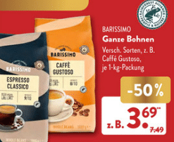 1 kg Barissimo ganze Bohne Caffé Gusto für 3,69 € statt 7,49 € bei Aldi Süd