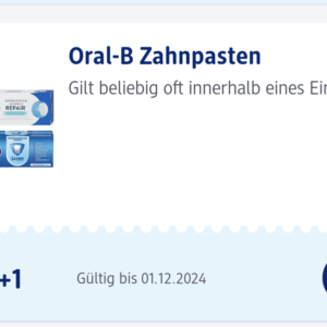 schaut doch Mal in eure DM-App, evtl. gibt’s auch bei euch den Coupon für gratis Zahnpasta von Oral-B.