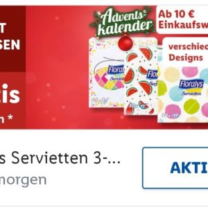 Im 15 Türchen des Adventskalenders in der Lidl plus App findet ihr einen Coupon für eine Packung gratis Servietten. Mindest-Einkauf dafür sind 10 € .