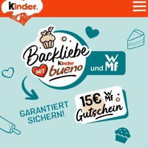 Kaufe 2 Kinder Bueno Aktionspackungen und bekomme garantiert einen Gutschein über 15 Euro von WMF + Gewinnspiel auf tolle Sachprämien