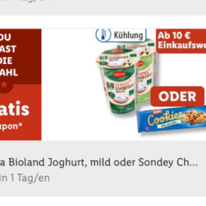 Lidl Plus App :Gratis Milbona Joghurt oder Sondey Cookies ab 10€ Einkaufswert.