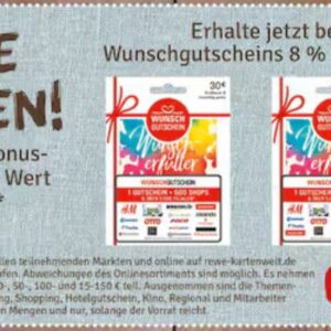 Wie auch bei der Rewe 8% Wunschgutschein in top läuft diese zeitgleich bei NAHKAUF SOGAR ETWAS BESSER… Es lassen sich hier noch 10% PAYBACK PUNKTE durch die Einlösung von Payback Punkten zurück holen. Leider habe ich hier weit und breit keinen Nahkauf (echt ärgerlich) und daher schreibt doch bitte eure Erfahrungen in die Kommentare. Die Aktion läuft noch bis 20.10.24 und hier sind die 125€ variablen Gutscheine dabei. Ihr bekommt bei diesem WERT einen 10€ Boni Gutschein und könnt diesen direkt und ohne Zuzahlung wandeln.