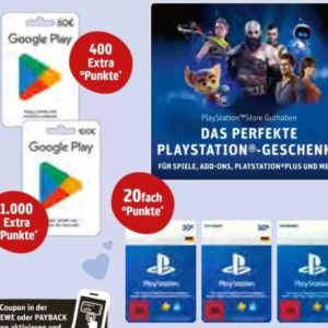 Rewe: 20-fach Payback auf PlayStation / bis zu 1000 Punkte auf Google Play