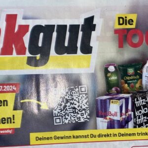 Bei Trinkgut könnt Ihr bis 14.07. täglich gewinnen: Chips, Getränke und Einkaufsgutschein. Ihr müsst 9 Felder freirubbeln und bei drei gleichen Feldern, habt ihr diesen Preis gewonnen. Es ist keine Registrierung erforderlich, es muss aber eine Handynummer angegeben werden, an die im Gewinn Fall ein Code gesendet wird.