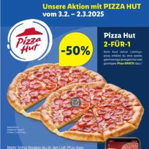 *Vorankündigung*Exklusive Lidl Plus-Partnerangebote: Pizza Hut – 2-FÜR-1 Aktion