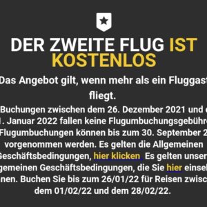 Wer nur noch heute einen Flug für Februar 2022 bucht, bezahlt bei einer Reise zu 2 nur für einen!