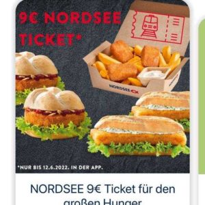 Das 9-Euro Ticket gibt es nicht nur bei der Bahn, sondern jetzt auch bei Nordsee. Schaut in eure App.