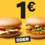 - 1 Burger nach Wahl für 1€ für Cheeseburger (statt 1,39€) & Chickenburger (statt 1,39€).