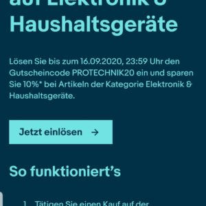 10%-ebay-Gutschein auf Elektronik & Haushaltsgeräte bis 16.09.20