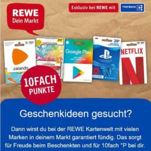10-fach Payback-Punkte auf alle Geschenkkarten vom 25.-31.10.21 bei REWE