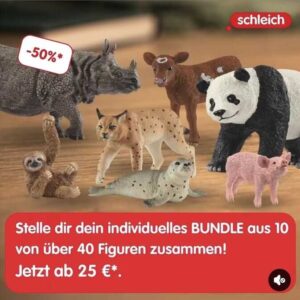 Weihnachten kann kommen mit dem großen schleich® Figuren-Bundle. Mix& Match jetzt 10 ausgewählte Figuren und spare 50%!* / * Das Angebot ist gültig von 17.11.2025 – 30.11.2025. Nicht mit anderen Aktionen & Rabattcodes kombinierbar. Solange der Vorrat reicht.