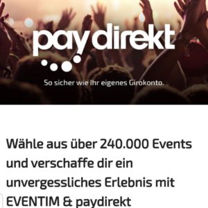 Wer jetzt ein Ticket bei Eventim bestellen möchte sollte mit Paydirekt bezahlen.