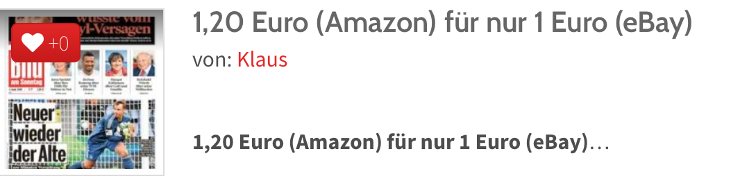 1,20 Euro (Amazon) für nur 1 Euro (eBay)