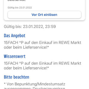 Bei Payback gibt es diese Woche wieder 15 Fach Punkte auf den gesamten Einkauf. Das entspricht 15 Cent je 2 Euro. Die Punkte können dann verschieden eingelöst werden. Man kann sie sogar sich auf das Konto überweisen lassen. Dabei entspricht 1 Punkt einem Cent.