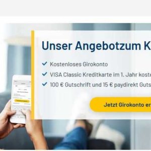 Zusätzlich wird von paydirekt ein Gutschein in Höhe von 15 € für die Kontoeröffnung gewährt. Der Gutschein Code wird am 25.06.2020 in die Postbox des Kunden eingespielt.Das Angebot gilt ab dem 30.04.2020 bis zum 28.05.2020 für Ihr erstes Girokonto und nicht für Kunden der Frankfurter Sparkasse oder Selbständige.