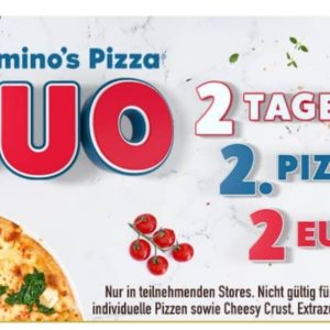 Bei Dominos Pizza gibt es für zwei Tage die 2. Pizza für nur 2 € dazu.