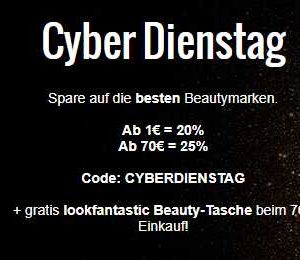 Bei lookfantastic.de, ein Onlineshop für Beauty Artikeln, bekommt man nur noch heute Rabatte auf ausgewählte Beautymarken mit dem Gutschein-Code: CYBERDIENSTAG.
