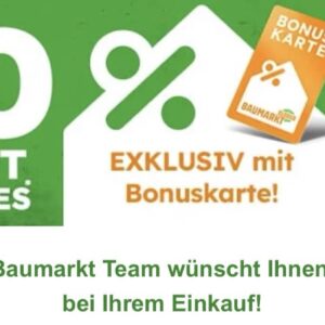 Von 29.12. bis 31.12.25 gibt es bei GLBOUS Baumarkt 20% auf alles mit der Bonuskarte (früher Stammkundenkarte)