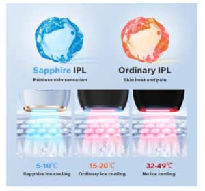 - Das LUBEX Sapphire IPL-Haarentfernungsset der Luxusserie verwendet die vierfache Eiskühlungstechnologie, um auch nach 30-minütiger Anwendung kühl zu bleiben, ohne Schmerzen und ohne Schäden an Ihrer Haut. Bietet Ihnen eine Kontakttemperatur von 5 °C bis 10 °C und ermöglicht eine Haarentfernung ohne Schmerzen und mit hoher Effizienz.