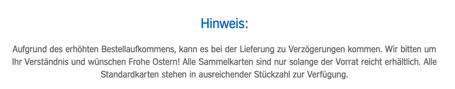 Bei mir kamen bisher zwei Lieferungen an. Fehlt also nur noch die dritte, wobei die zuletzt bestellte Karte schon dabei war. ?