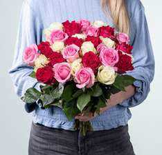 Rosen sind die schönste Art, Gefühle zu zeigen. Die Königin der Blumen präsentiert sich mit prachtvollen Blüten und einem betörenden Duft. Möchtest du deinen Herzensmenschen mit einem Bund prächtiger Blumen überraschen, dann ist unser Rosentraum perfekt geeignet. Insgesamt 30 Stiele mit einer Stiellänge von ca. 50 cm lassen das Herz des Empfängers höherschlagen. Die zauberhaften Blüten in strahlendem Rosé, hellem Creme und einem dunklen Pink verleihen dem Bund einen einzigartigen Charme. Rosen sind seit jeher ein Symbol für Liebe und jede Farbe hat ihre ganz eigene Bedeutung. So stehen roséfarbene Rosen für Schüchternheit und zärtliche Liebe, weiße Rosen für Reinheit und Unschuld und gelbe Rosen für Freude und Dankbarkeit.