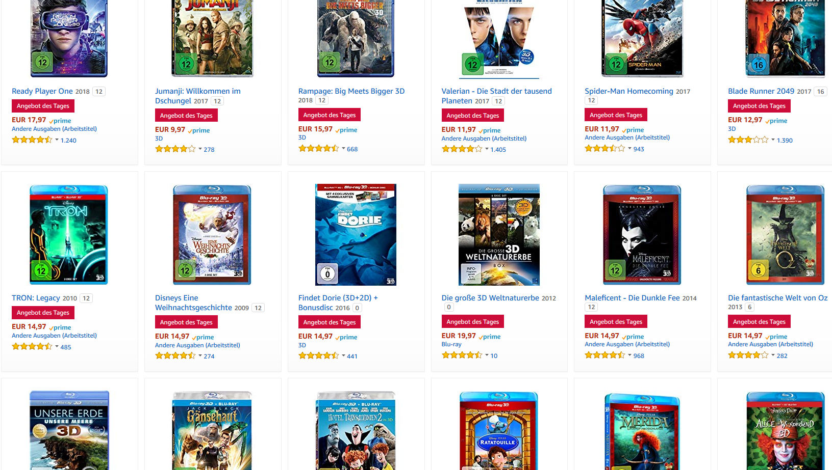 z. B. Ready Player One für 17,97 Euro, Blade Runner 2049 für 12,97 Euro.