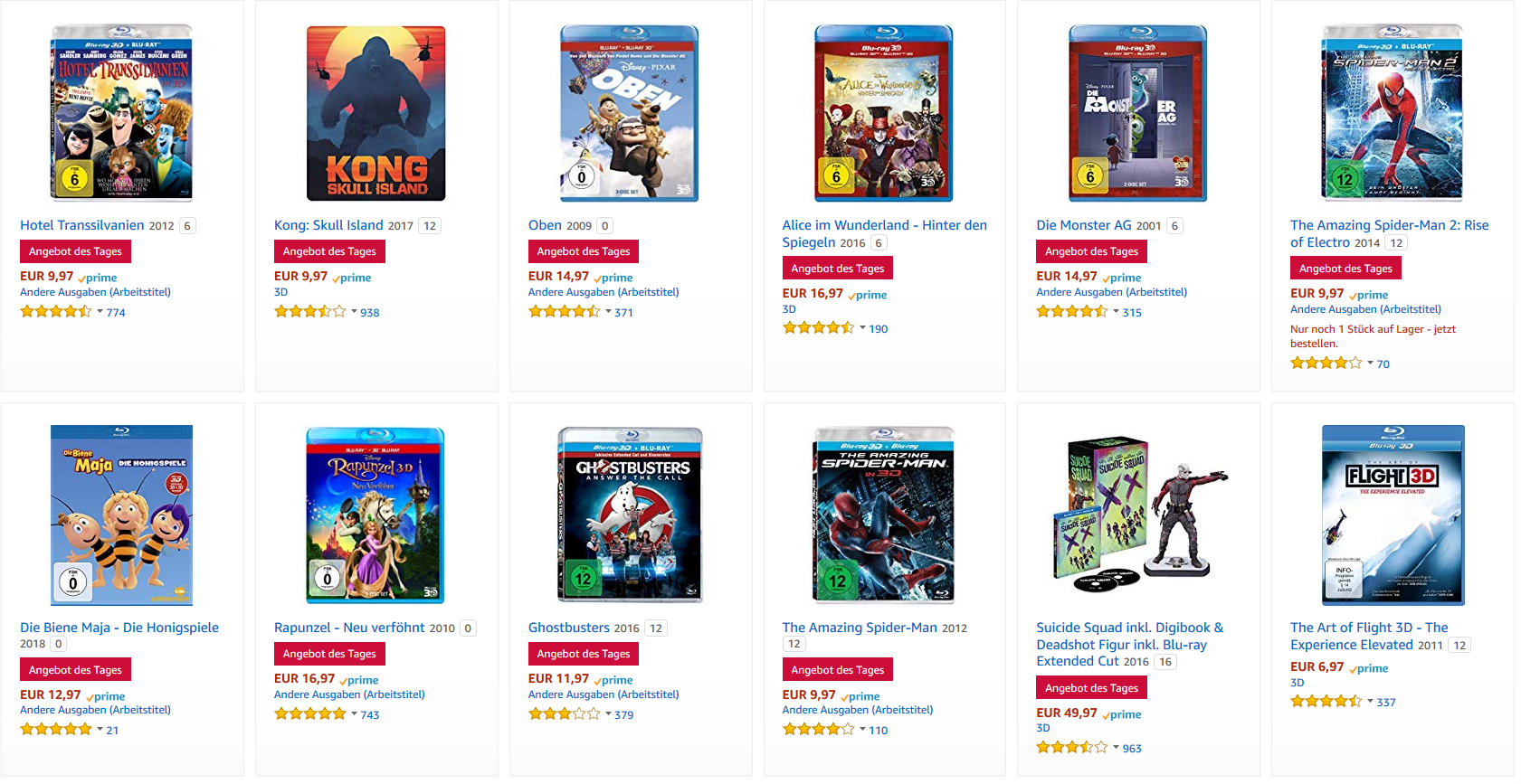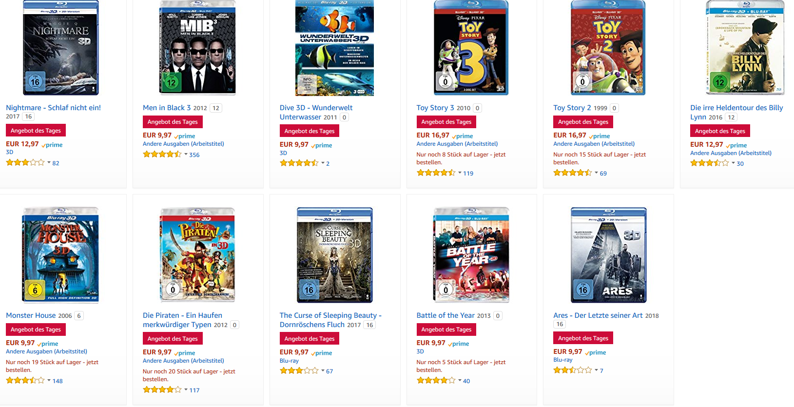 3D-Filme im Tagesangebot (Amazon) bis zu -33%