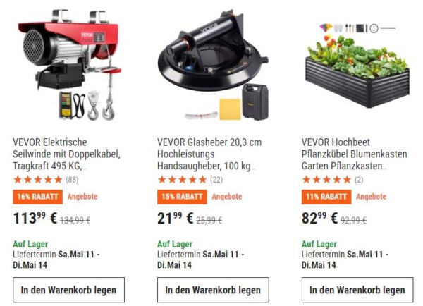 Die Marke VEVOR hat einige sehr interessante Artikel am Start. Bei Bedarf schaut hier gerne mal rein! 😉