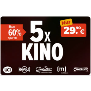 Die Tickets sind einlösbar bei CineStar, CinePlex, UCI und Kinopolis. So zahlt ihr nur noch 5,98€ Pro Ticket statt den regulären Preisen je nach Film ab 7€ bis 9,90€.