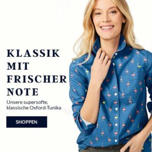 Shoppt jetzt zum Beispiel die neue Oxford-Bluse, jetzt ab €37,50 mit 50% auf 1 Artikel!