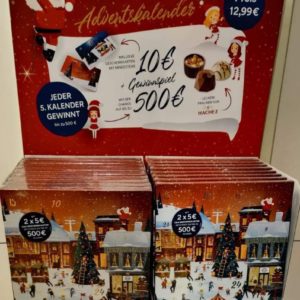 In der Penny Kartenwelt gibt es Aktuell 20& Rabatt auf die C&A Geschenkkarten. So bekommt ihr für 52€, 65€ C&A Guthaben. Von diesem kauft ihr 5 Adventskalender á 13€. In dem Kalender ist ein Garantierter Gewinn von 10€. So habt ihr 50€ wieder reingeholt. Eventuell habt ihr ja das Glück und bekommt höherwertige Gutscheine heraus und macht damit sogar Gewinn. Viel Glück 😊
