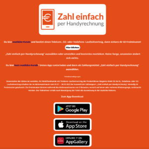 - Als Zahlungsmittel „Zahl einfach per Handyrechnung“ auswählen oder umstellen
