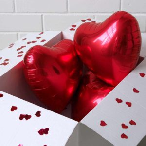 Valentinstag: Box mit roten Herz-Ballons inkl. Helium, Konfetti & gratis Karte 💖💕