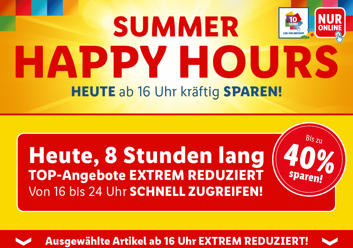 Ab 16-24 Uhr heute sind mal wieder die Lidl Summer Happy Hours bis zu 40% Rabatt