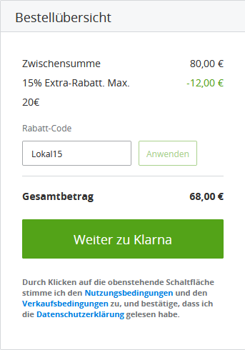 - 100€ Gutschein für 80€ mit dem Code Lokal15 im Warenkorb für 68€