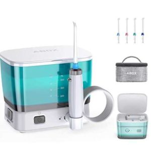 - ABOX Munddusche ist mit einer Größe von 14 x 8,3 x 10 cm ultrakompakt. Die Bestandteile können getrennt und in den Tank gelegt werden. Geliefert wird er mit einer hochwertigen und wasserfesten Reisetasche . Ideal für Reisen und begrenzte Ablageflächen