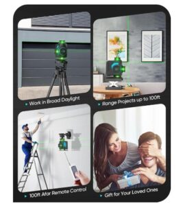 - ACTBOT 16 Linien selbstnivellierender Laser, 4 x 360° Fadenkreuz, 4D grüne Laserstrahlen, wiederaufladbar, 2 x 360° horizontale und 2 x 360° vertikale Laserlinien, mit 10000 mA Lithium-Ionen-Batterien