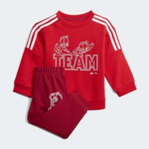 Hier kommt 3-Streifen Style auch für die Kleinsten. In diesem Jogginganzug für Babys und Kleinkinder hat es dein Schatz superbequem. Das weiche Material fühlt sich angenehm auf der Haut an. Und Disneys Tick, Trick und Track bringen Verspieltheit in den Look.