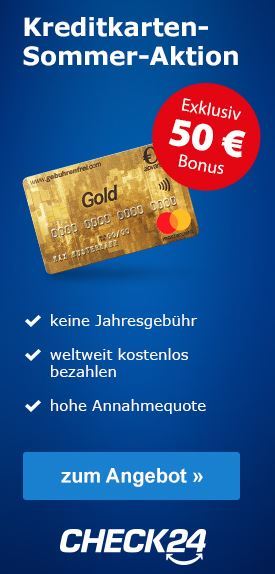 Über check24 gibt es aktuell eine nette Kreditkarten-Aktion: